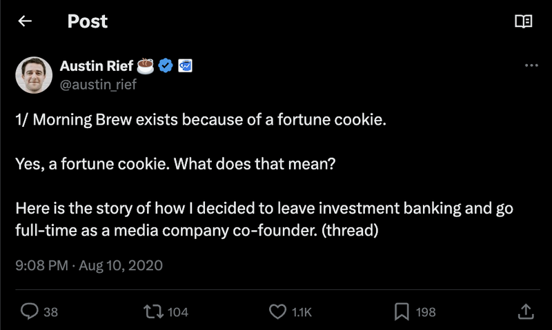 When Elon Musk tweeted a fortune cookie message, it racked up over 450K likes on X, proving its viral potential. Morning Brew co-founder Austin Rief also shared how a fortune cookie gave him the push he needed to go all-in on his company. And let's not forget Spanish golfer Jon Rahm, whose cookie predicted his 2023 Masters win years in advance with a fortune that read “Your talents will be recognized and suitably rewarded.”