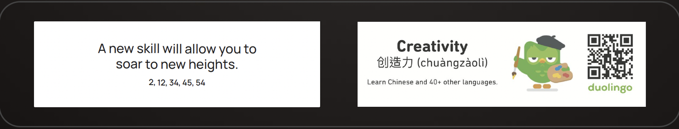 Instead of a generic line like, “You will be hungry again in one hour,” we helped Duolingo create a fortune slip that felt like an extension of Duo himself—relentless, cheeky, and impossible to ignore.
